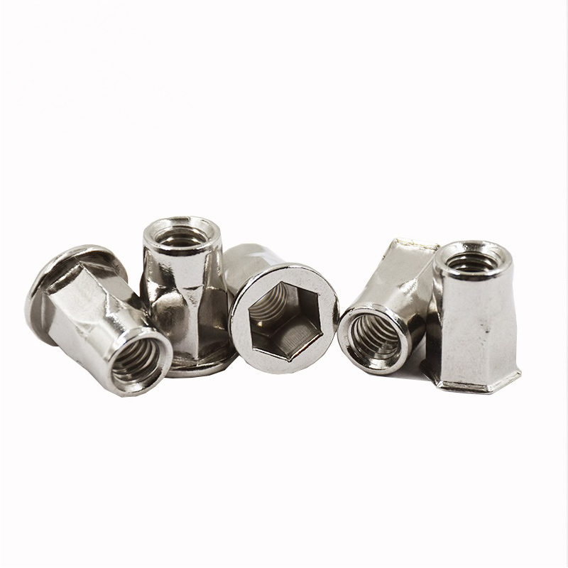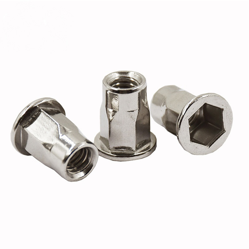 A: You can install it in all sorts of materials, as long as you drill a hexagonal hole of the right size first. The common ones people use are mild steel, aluminum, and fiberglass. They work really well in brittle or soft materials too—like plastic, particle board, or thin sheet metal. Regular rivet nuts might spin in these materials, but this one’s hex shape grabs onto them better. That way, you get a threaded point that stays solid and doesn’t spin around.