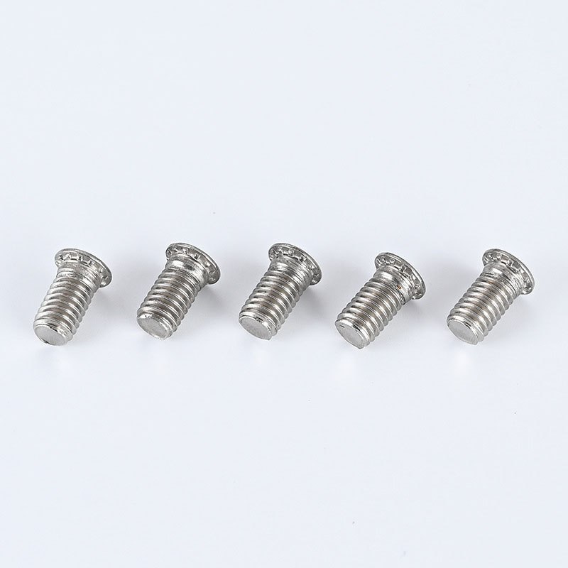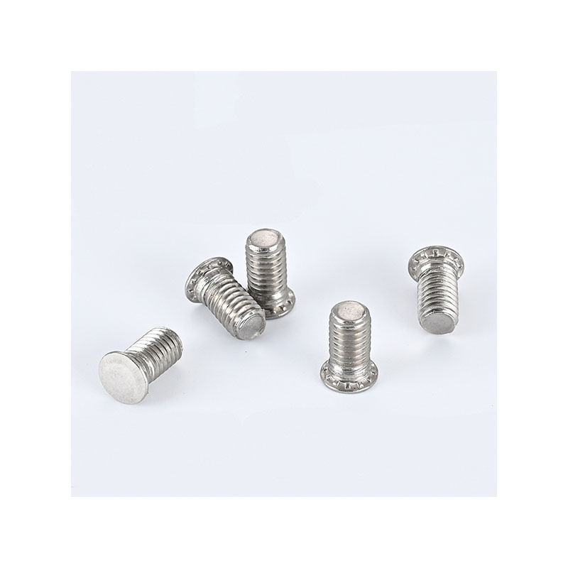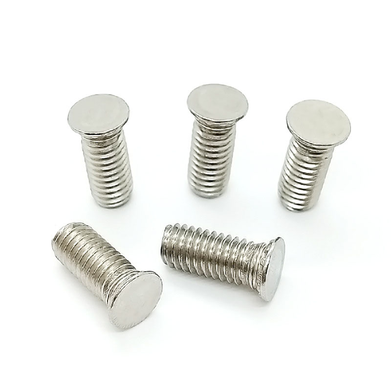 Concealed head threaded studs require a specific riveting process. The screw is inserted into pre-drilled holes in the materials being joined. Using a suitable riveting tool (e.g., orbital or radial riveter), the protruding threaded end is mechanically deformed ("riveted") against a die, forming a secondary head that permanently clamps the materials, creating a strong, flush joint.