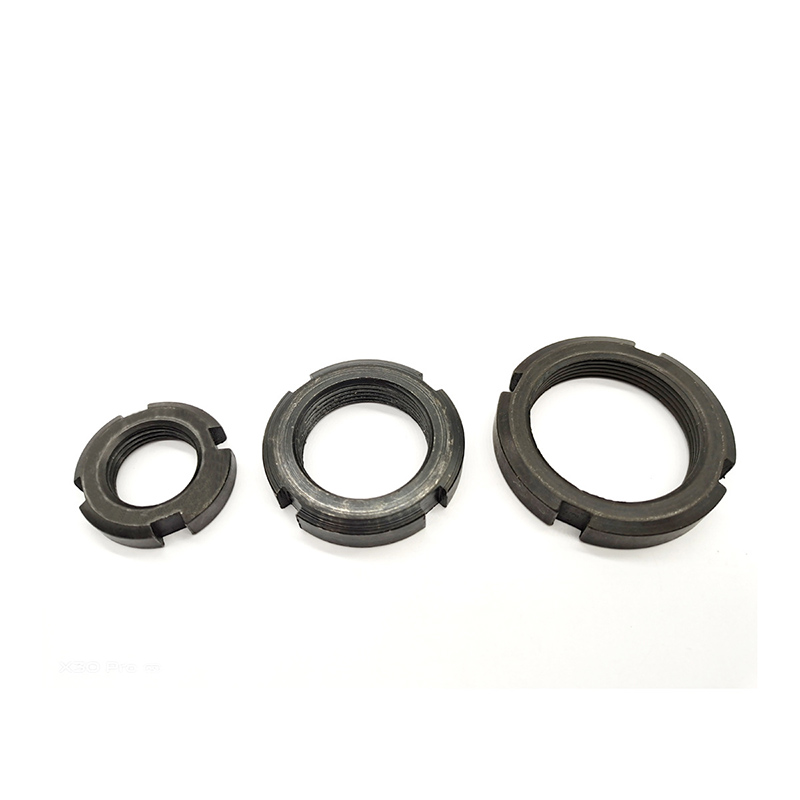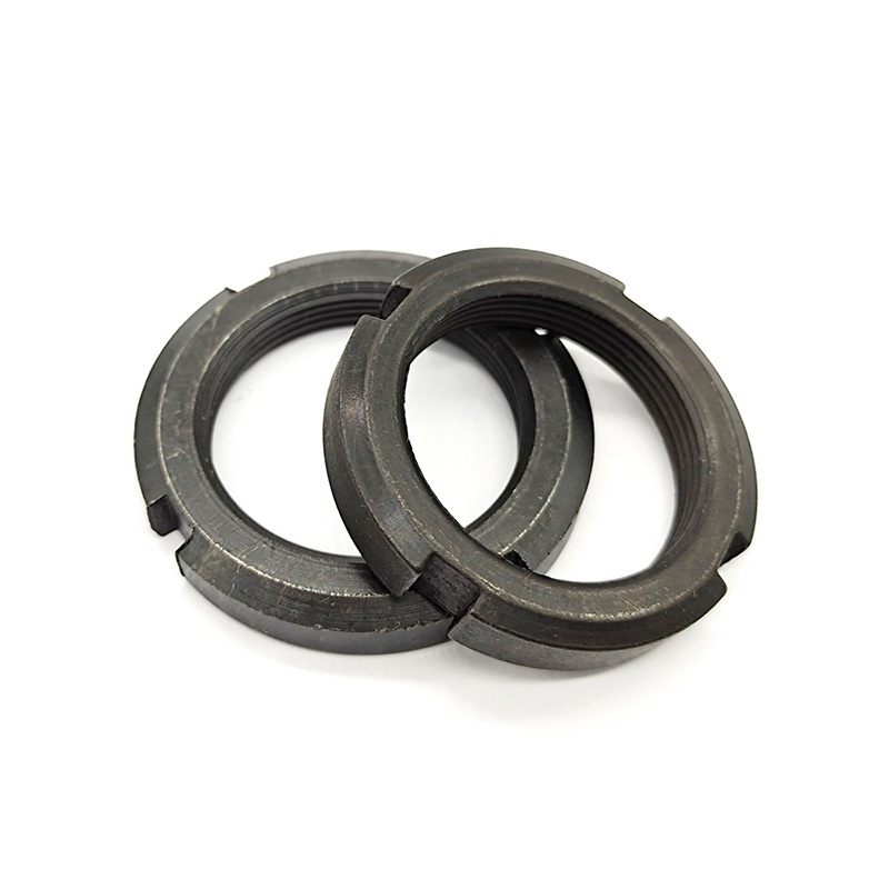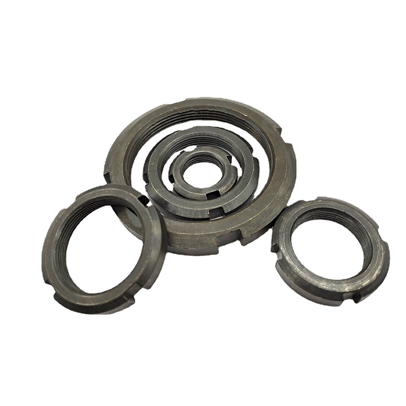 A:The Double Secured Slotted Locking Round Nut is designed to securely lock onto a threaded component while allowing for easy visual inspection. The primary function of this Double-Secured Slotted locking round nut is to prevent loosening under vibration in assemblies like rotating shafts, axles, and precision machinery. Its round shape with slots enables cotter pin or safety wire insertion, making the Double-Secured Slotted locking round nut essential for safety-critical applications across automotive and industrial sectors.