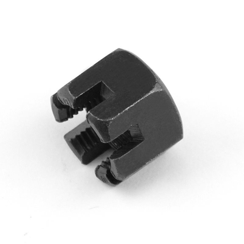 | Key Feature | These slots at the top are used to place the locking pins or safety ropes.Once you tighten the nut, pass the pin through these slots and the holes on the bolt.This will fix it in place (even with strong vibrations, the nut will not loosen).This is a simple mechanical lock that doesn't require any complex coatings or additional components. |
