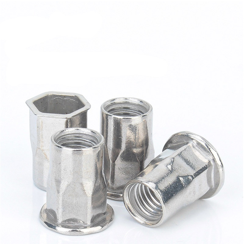 Secure Anchoring Hex Rivet Nuts are manufactured from a variety of durable materials to meet the diverse application needs of different industries and projects, including ordinary carbon steel, stainless steel (such as the commonly used grades 304 and 316), lightweight aluminum, and conductive copper. The selection of the right material for Nuts mainly depends on practical factors like the level of strength the fastener is required to have, its ability to resist corrosion in different settings, and the specific environmental conditions that the fastener will be exposed to during its use.