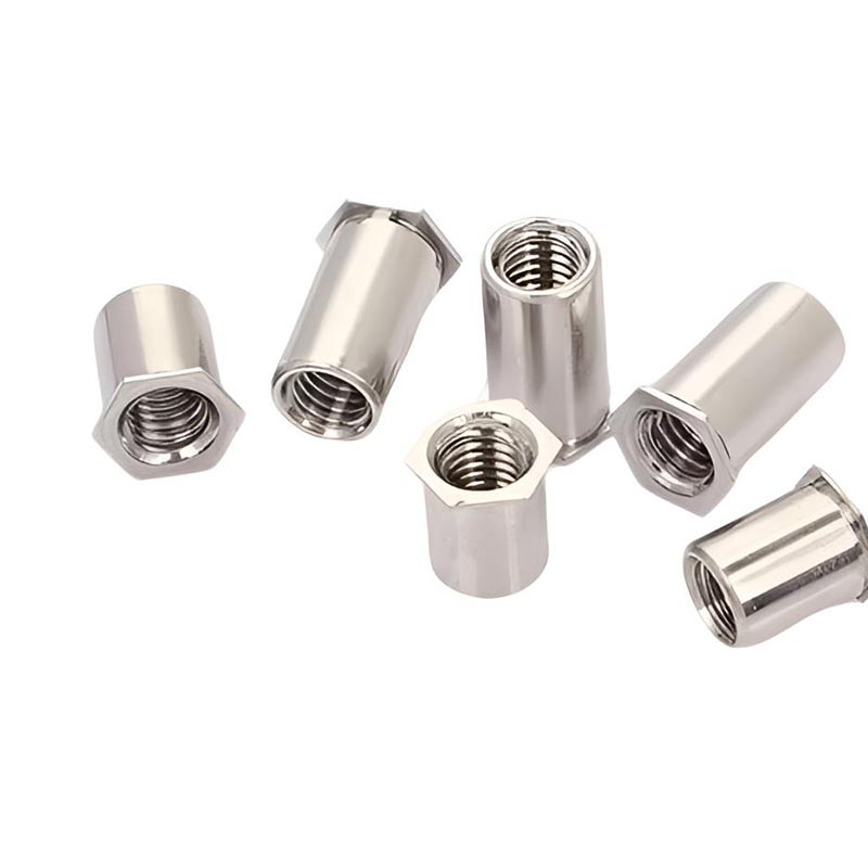 Various sizes of through-hole hexagonal rivet nut commonly use carbon steel as the raw material.Carbon steel is the most widely used option. It’s tough enough for regular sheet metal jobs, like furniture assembly or small equipment fixes. Most carbon steel versions have a basic zinc plating to prevent rust, which works well for indoor use or covered outdoor areas.